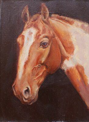PrzemiΕa KoΕcielna maluje portrety, zwierzΔta, kwiaty.