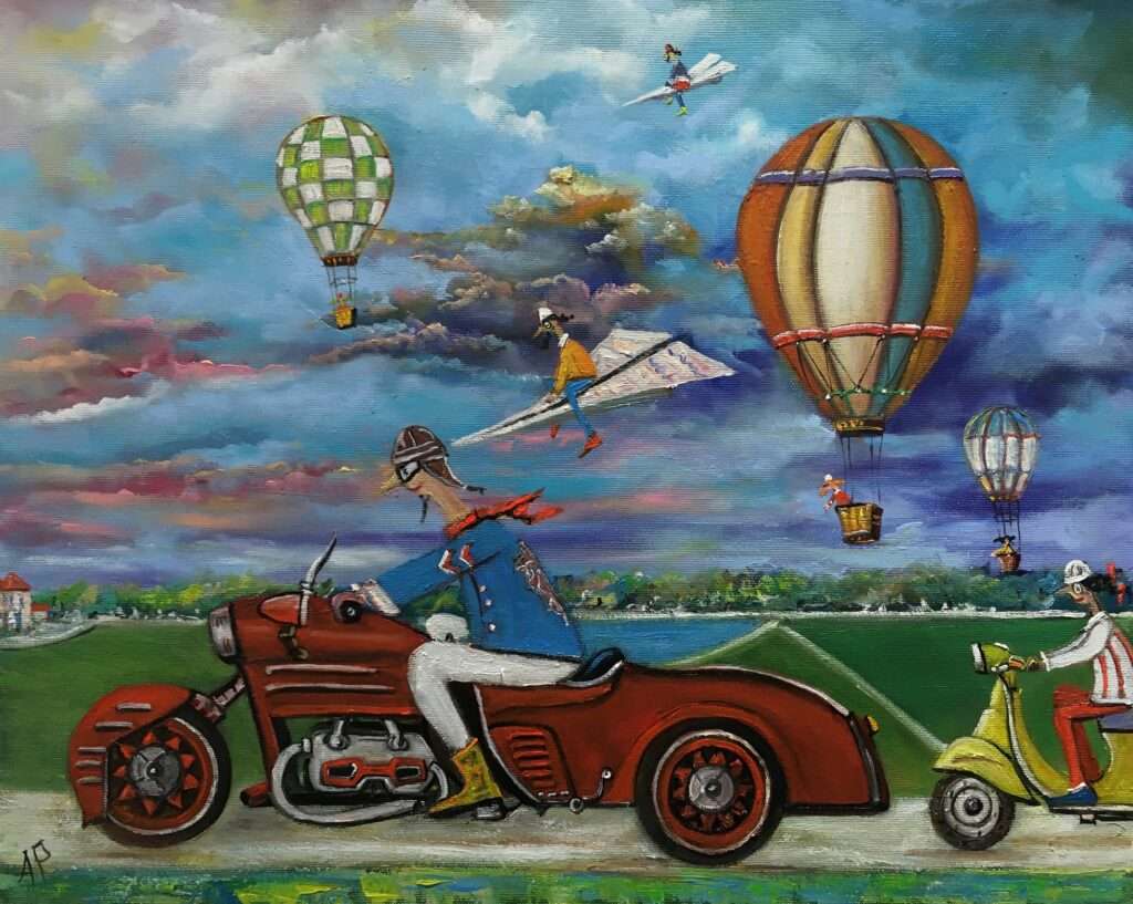 Hundreds of paintings and sculptures are in collections all over the world, including USA, New Zealand and even Afghanistan also in all European countries. Currently inspired by ceramic art in a funny way trying to tell about human passions. Behind the fairy-tale decorations are hidden the deepest human passions and desires. Canvas stretched on wooden frame. Colors of the painting may slightly differ from photos due to screen settings.