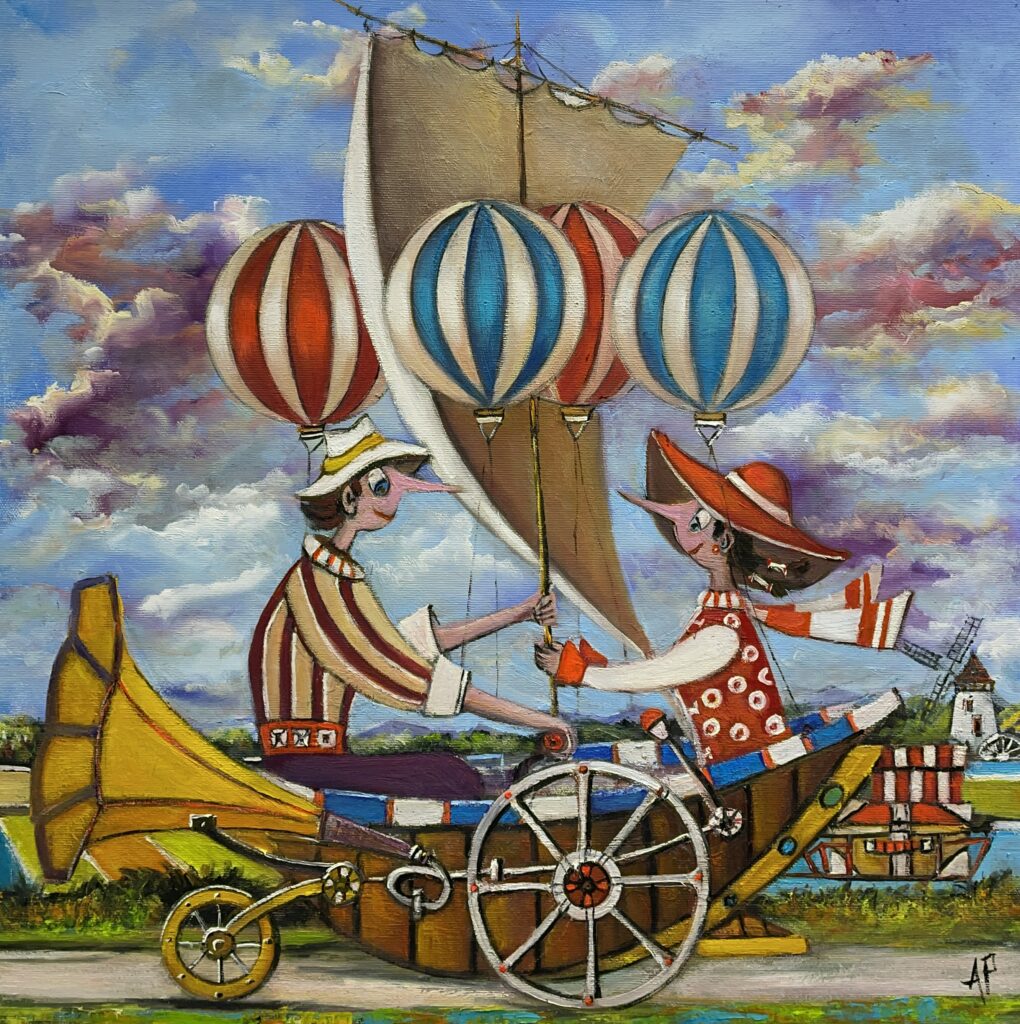 Hundreds of paintings and sculptures are in collections all over the world, including USA, New Zealand and even Afghanistan also in all European countries. Currently inspired by ceramic art in a funny way trying to tell about human passions. Behind the fairy-tale decorations are hidden the deepest human passions and desires. Canvas stretched on wooden frame. Colors of the painting may slightly differ from photos due to screen settings.