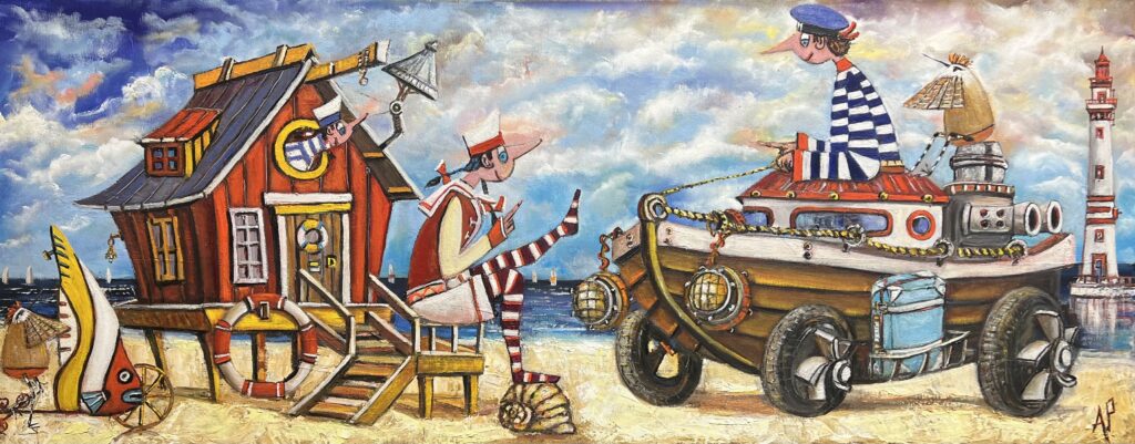Hundreds of paintings and sculptures are in collections all over the world, including USA, New Zealand and even Afghanistan also in all European countries. Currently inspired by ceramic art in a funny way trying to tell about human passions. Behind the fairy-tale decorations are hidden the deepest human passions and desires. Canvas stretched on wooden frame. Colors of the painting may slightly differ from photos due to screen settings.