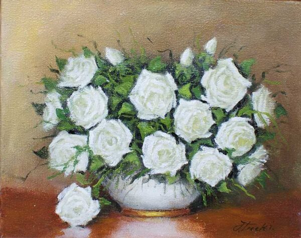 Józef Łącki maluje kwiaty, pejzaże, architekture Krakowa.