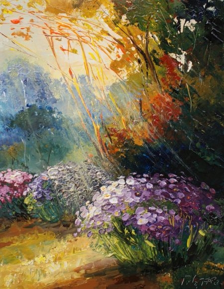 Tadeusz Wojtkowski - tematyką jego prac są kwiaty i pejzaże.