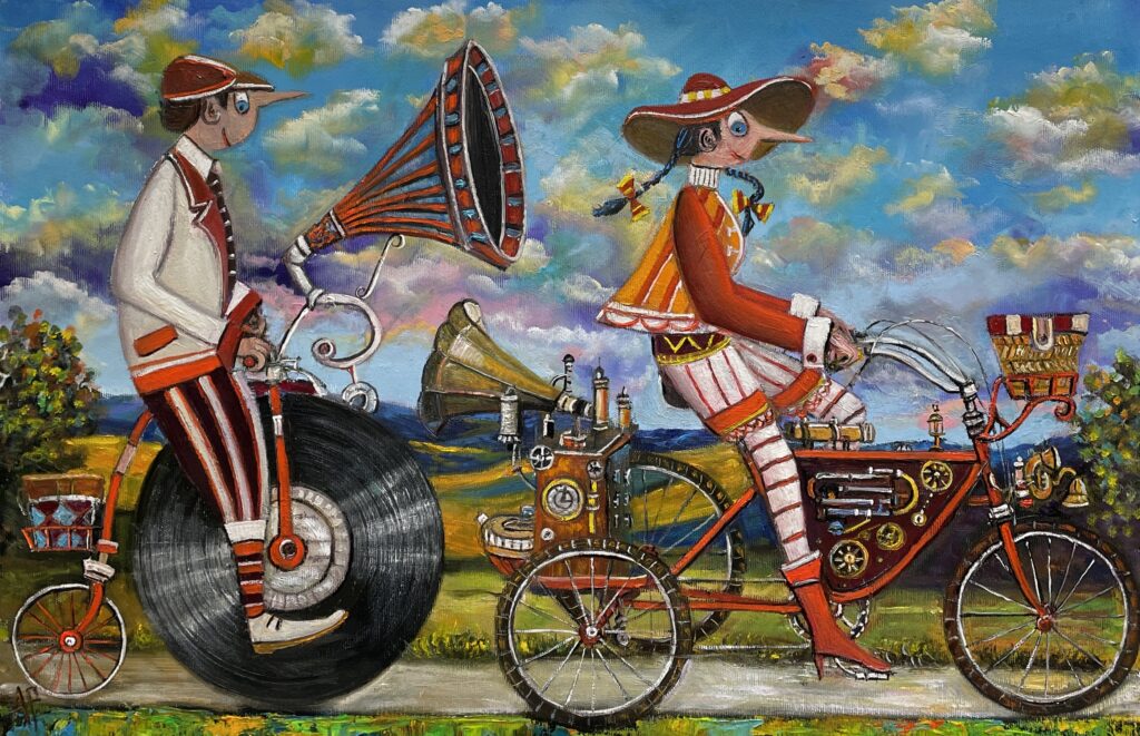 Hundreds of paintings and sculptures are in collections all over the world, including USA, New Zealand and even Afghanistan also in all European countries. Currently inspired by ceramic art in a funny way trying to tell about human passions. Behind the fairy-tale decorations are hidden the deepest human passions and desires. Canvas stretched on wooden frame. Colors of the painting may slightly differ from photos due to screen settings.