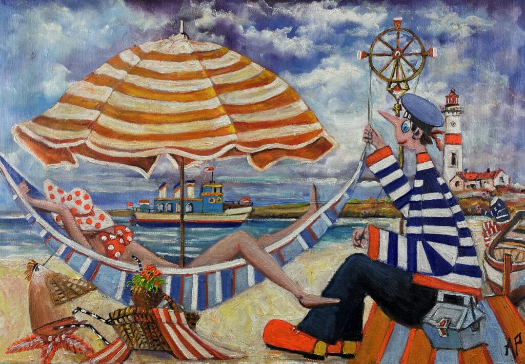 Hundreds of paintings and sculptures are in collections all over the world, including USA, New Zealand and even Afghanistan also in all European countries. Currently inspired by ceramic art in a funny way trying to tell about human passions. Behind the fairy-tale decorations are hidden the deepest human passions and desires. Canvas stretched on wooden frame. Colors of the painting may slightly differ from photos due to screen settings.