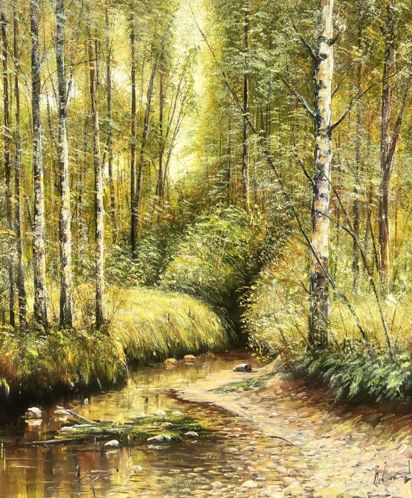 Canvas stretched on wooden frame. Artwork is signed at front bottom left corner. Protected with varnish. Colors of the painting may slightly differ from photos due to screen settings. Comes with a certificate of authenticity.
