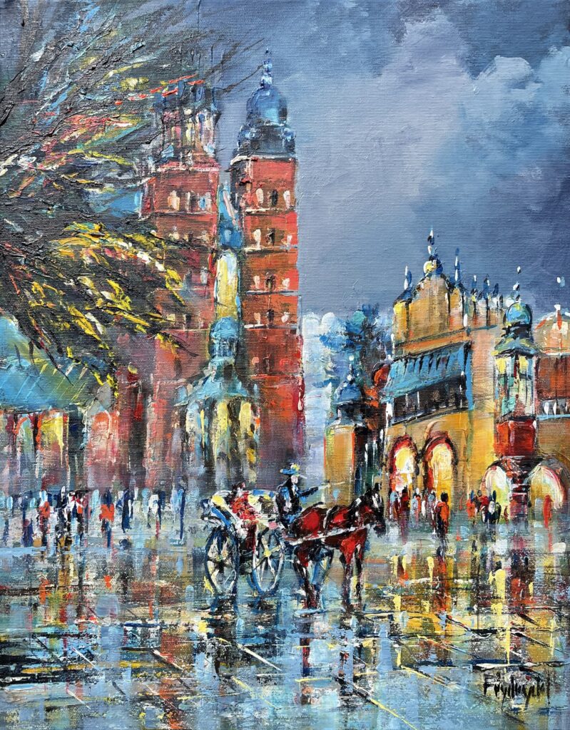 Danuta Frydrych, a talented painting artist, creates her paintings with oil paint on canvas. Her works emanate a unique atmosphere after the rain, in which strong reflections and the play of lights give them an extraordinary atmosphere. In her paintings, you can see how a raindrop flows down the glass, reflecting and blurring the light in a mysterious way. This magical moment is captured on canvas with incredible precision. Through the intricately applied layers of paint, we feel the delicate falling drops and their effect on the surrounding world. The oil paints that Danuta uses create dense and deep colors that bring the paintings to life. Her technique is precise and virtuosic, and every brushstroke matters. As a result, each piece reflects her ability to convey delicacy and strength at the same time. The play of lights and shadows is a key element in Danuta's work. The light falls on the wet sidewalks, reflecting off the puddles, creating a colorful dance. Reflections on the wet surface of the street or shiny leaves give the paintings a three-dimensional character. The artist's eyes are able to see beauty in ordinary, everyday situations and express it on canvas in a unique way. Each painting by Danuta Frydrych is a story that delights and inspires. Her works take us to a magical world after the rain, where reflections and the play of lights enliven landscapes and urban landscapes. Her talent, passion and ability to create atmospheric scenes make Danuta's paintings an unforgettable experience for the eyes and soul.