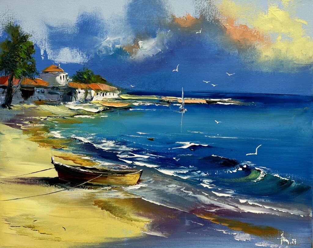 Painiting on canvas. Shipped in a tube. Colors of the painting may slightly differ from photos due to screen settings. Comes with a certificate of authenticity.