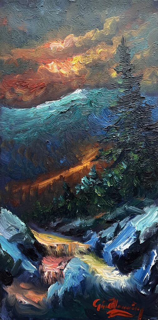 Canvas stretched on wooden frame. Artwork is signed at front bottom left corner. Protected with varnish. Colors of the painting may slightly differ from photos due to screen settings. Comes with a certificate of authenticity.