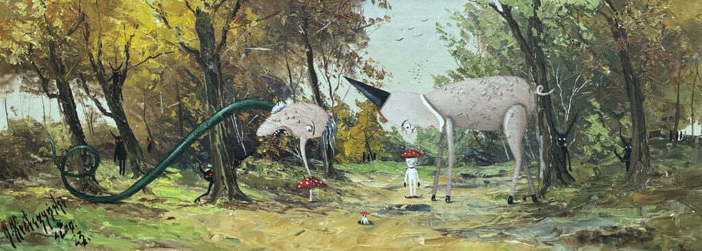 His art is inspired by Bosch and Holland art masters. He designed theater set for βLife is Beautifulβ.
