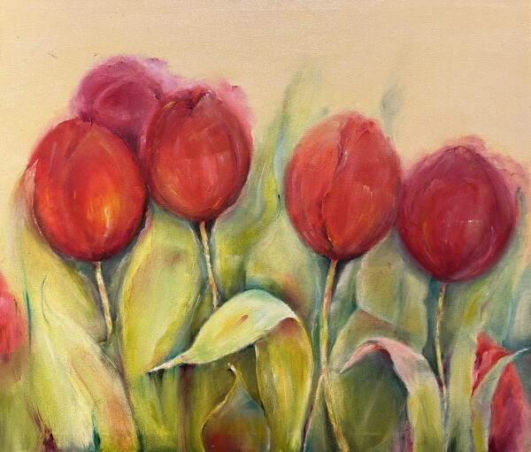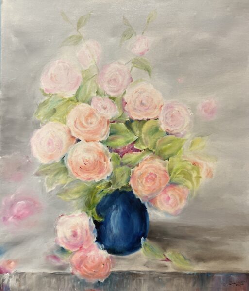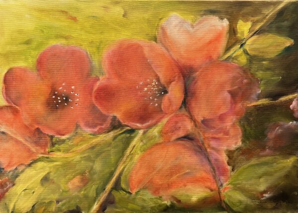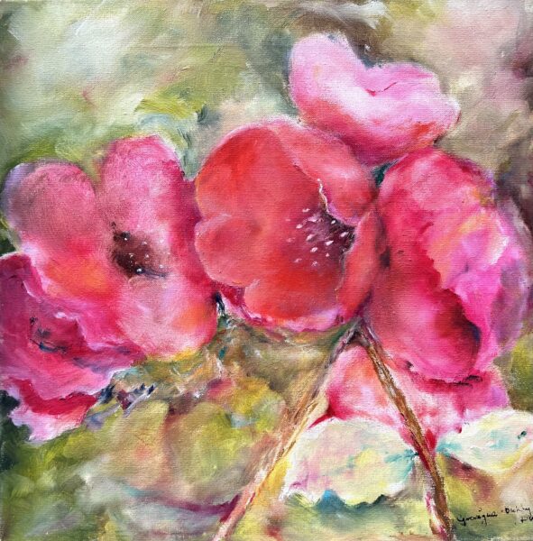 This painting exudes a sense of longing and serenity, as if the blooms are whispering secrets only the heart can understand. The warm palette and flowing composition create a dreamlike ambiance that soothes the soul and stirs gentle emotion.