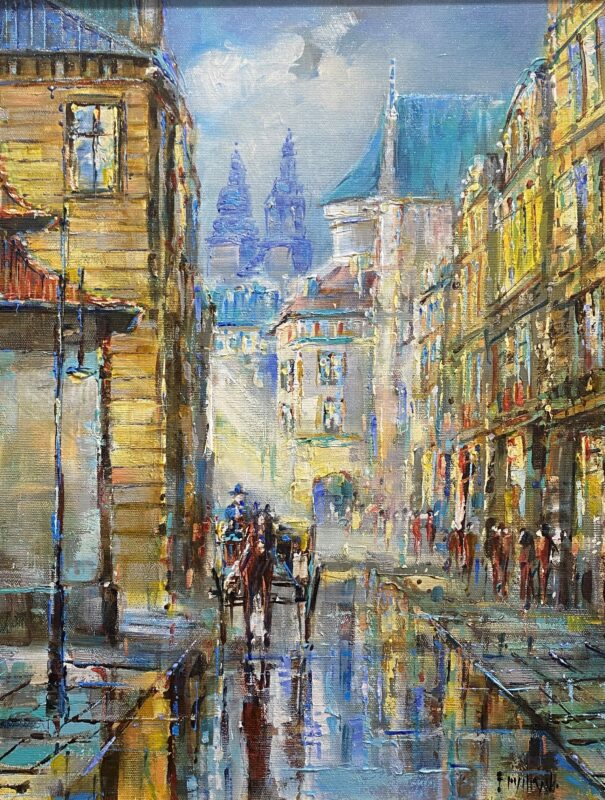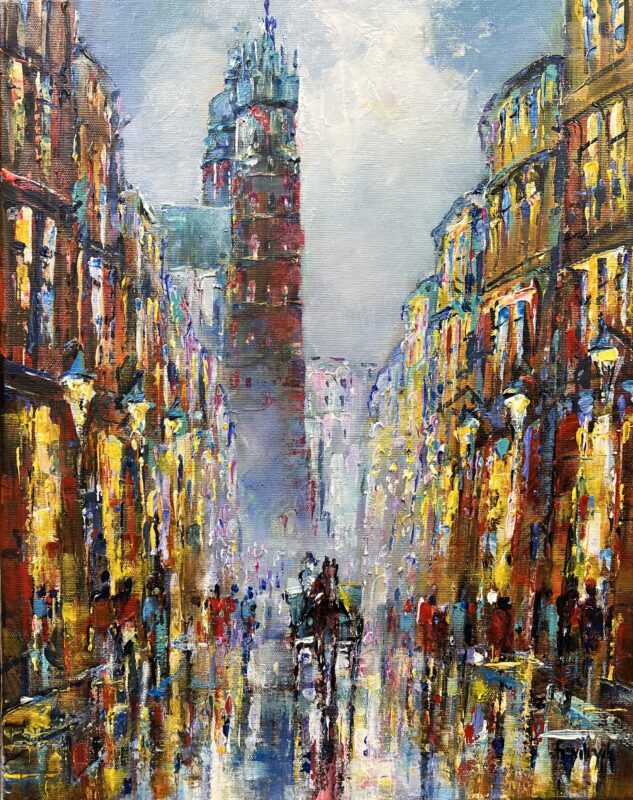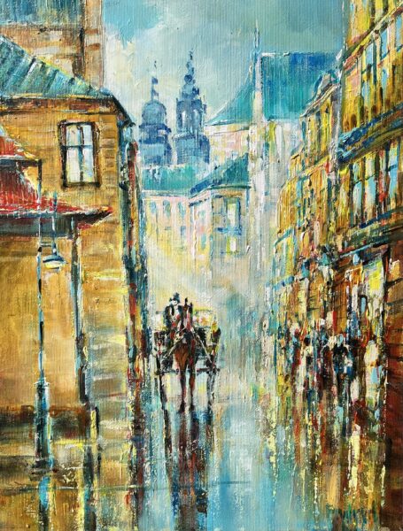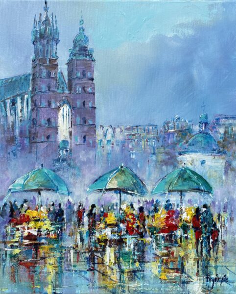 Danuta Frydrych, a talented painting artist, creates her paintings with oil paint on canvas. Her works emanate a unique atmosphere after the rain, in which strong reflections and the play of lights give them an extraordinary atmosphere. In her paintings, you can see how a raindrop flows down the glass, reflecting and blurring the light in a mysterious way. This magical moment is captured on canvas with incredible precision. Through the intricately applied layers of paint, we feel the delicate falling drops and their effect on the surrounding world. The oil paints that Danuta uses create dense and deep colors that bring the paintings to life. Her technique is precise and virtuosic, and every brushstroke matters. As a result, each piece reflects her ability to convey delicacy and strength at the same time. The play of lights and shadows is a key element in Danuta's work. The light falls on the wet sidewalks, reflecting off the puddles, creating a colorful dance. Reflections on the wet surface of the street or shiny leaves give the paintings a three-dimensional character. The artist's eyes are able to see beauty in ordinary, everyday situations and express it on canvas in a unique way. Each painting by Danuta Frydrych is a story that delights and inspires. Her works take us to a magical world after the rain, where reflections and the play of lights enliven landscapes and urban landscapes. Her talent, passion and ability to create atmospheric scenes make Danuta's paintings an unforgettable experience for the eyes and soul.