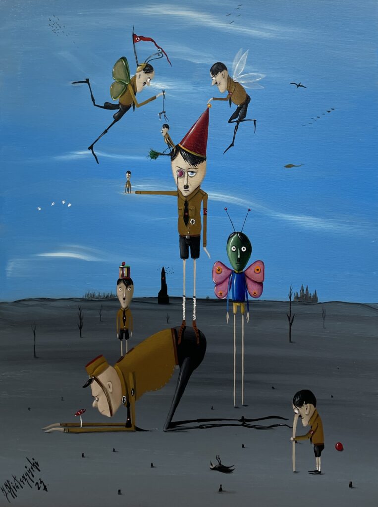 His art is inspired by Bosch and Holland art masters. He designed theater set for “Life is Beautiful”.