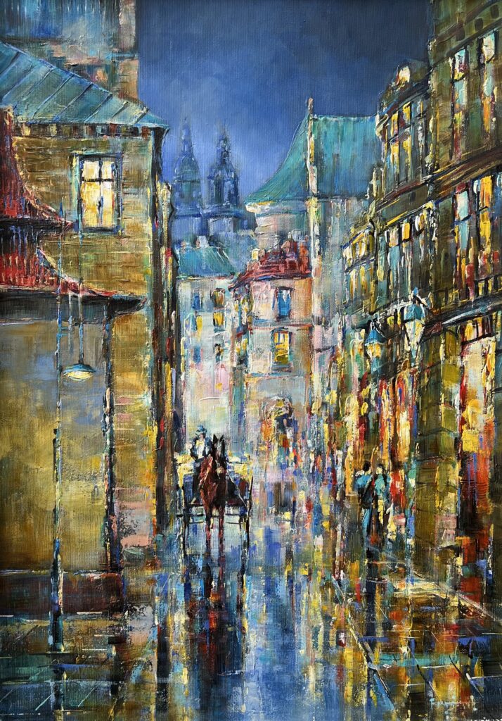 Danuta Frydrych, a talented painting artist, creates her paintings with oil paint on canvas. Her works emanate a unique atmosphere after the rain, in which strong reflections and the play of lights give them an extraordinary atmosphere. In her paintings, you can see how a raindrop flows down the glass, reflecting and blurring the light in a mysterious way. This magical moment is captured on canvas with incredible precision. Through the intricately applied layers of paint, we feel the delicate falling drops and their effect on the surrounding world. The oil paints that Danuta uses create dense and deep colors that bring the paintings to life. Her technique is precise and virtuosic, and every brushstroke matters. As a result, each piece reflects her ability to convey delicacy and strength at the same time. The play of lights and shadows is a key element in Danuta's work. The light falls on the wet sidewalks, reflecting off the puddles, creating a colorful dance. Reflections on the wet surface of the street or shiny leaves give the paintings a three-dimensional character. The artist's eyes are able to see beauty in ordinary, everyday situations and express it on canvas in a unique way. Each painting by Danuta Frydrych is a story that delights and inspires. Her works take us to a magical world after the rain, where reflections and the play of lights enliven landscapes and urban landscapes. Her talent, passion and ability to create atmospheric scenes make Danuta's paintings an unforgettable experience for the eyes and soul.