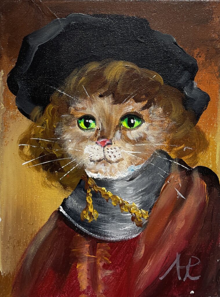 https://www.ahg36.com/modern-art-painting/rembrands-cat-by-artist-adam-rawicz-74624/