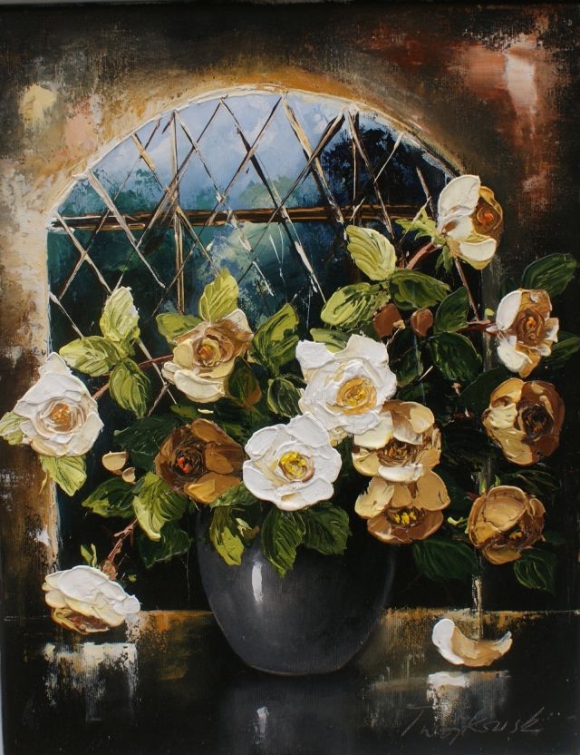 Tadeusz Wojtkowski - tematyką jego prac są kwiaty i pejzaże.