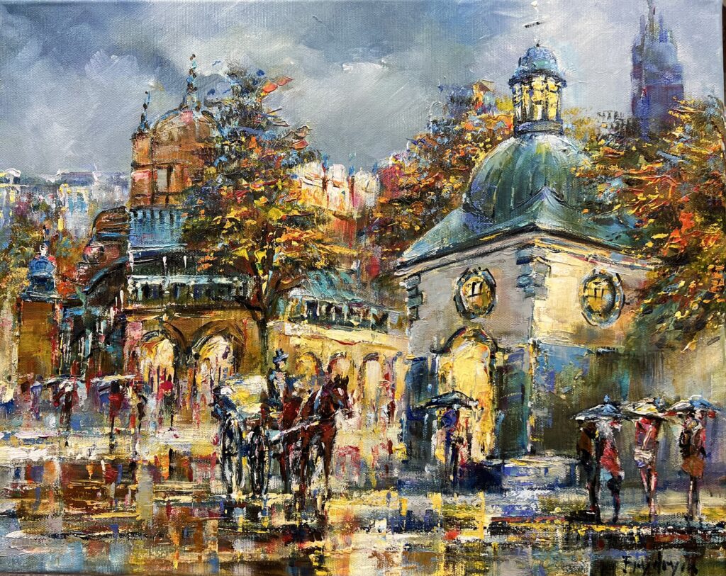 Danuta Frydrych, a talented painting artist, creates her paintings with oil paint on canvas. Her works emanate a unique atmosphere after the rain, in which strong reflections and the play of lights give them an extraordinary atmosphere. In her paintings, you can see how a raindrop flows down the glass, reflecting and blurring the light in a mysterious way. This magical moment is captured on canvas with incredible precision. Through the intricately applied layers of paint, we feel the delicate falling drops and their effect on the surrounding world. The oil paints that Danuta uses create dense and deep colors that bring the paintings to life. Her technique is precise and virtuosic, and every brushstroke matters. As a result, each piece reflects her ability to convey delicacy and strength at the same time. The play of lights and shadows is a key element in Danuta's work. The light falls on the wet sidewalks, reflecting off the puddles, creating a colorful dance. Reflections on the wet surface of the street or shiny leaves give the paintings a three-dimensional character. The artist's eyes are able to see beauty in ordinary, everyday situations and express it on canvas in a unique way. Each painting by Danuta Frydrych is a story that delights and inspires. Her works take us to a magical world after the rain, where reflections and the play of lights enliven landscapes and urban landscapes. Her talent, passion and ability to create atmospheric scenes make Danuta's paintings an unforgettable experience for the eyes and soul.