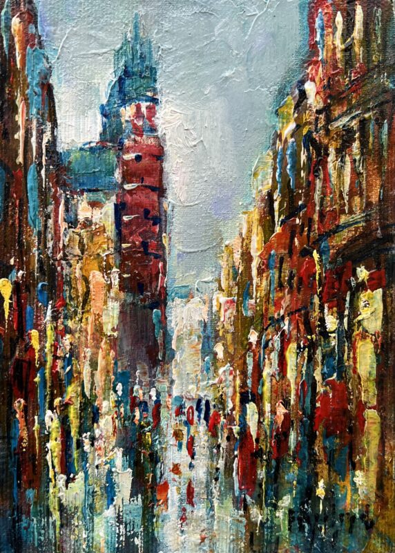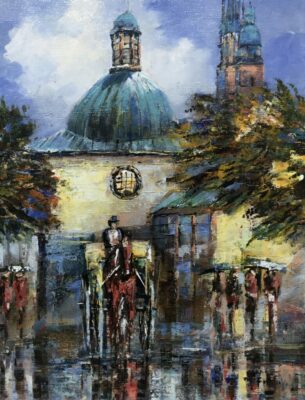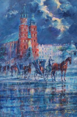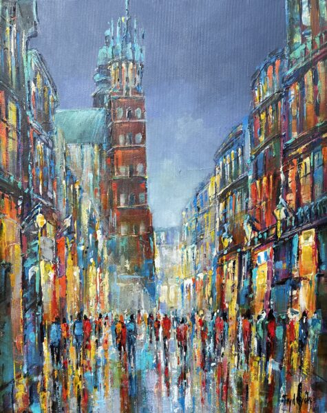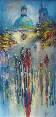 Danuta Frydrych, a talented painting artist, creates her paintings with oil paint on canvas. Her works emanate a unique atmosphere after the rain, in which strong reflections and the play of lights give them an extraordinary atmosphere. In her paintings, you can see how a raindrop flows down the glass, reflecting and blurring the light in a mysterious way. This magical moment is captured on canvas with incredible precision. Through the intricately applied layers of paint, we feel the delicate falling drops and their effect on the surrounding world. The oil paints that Danuta uses create dense and deep colors that bring the paintings to life. Her technique is precise and virtuosic, and every brushstroke matters. As a result, each piece reflects her ability to convey delicacy and strength at the same time. The play of lights and shadows is a key element in Danuta's work. The light falls on the wet sidewalks, reflecting off the puddles, creating a colorful dance. Reflections on the wet surface of the street or shiny leaves give the paintings a three-dimensional character. The artist's eyes are able to see beauty in ordinary, everyday situations and express it on canvas in a unique way. Each painting by Danuta Frydrych is a story that delights and inspires. Her works take us to a magical world after the rain, where reflections and the play of lights enliven landscapes and urban landscapes. Her talent, passion and ability to create atmospheric scenes make Danuta's paintings an unforgettable experience for the eyes and soul.