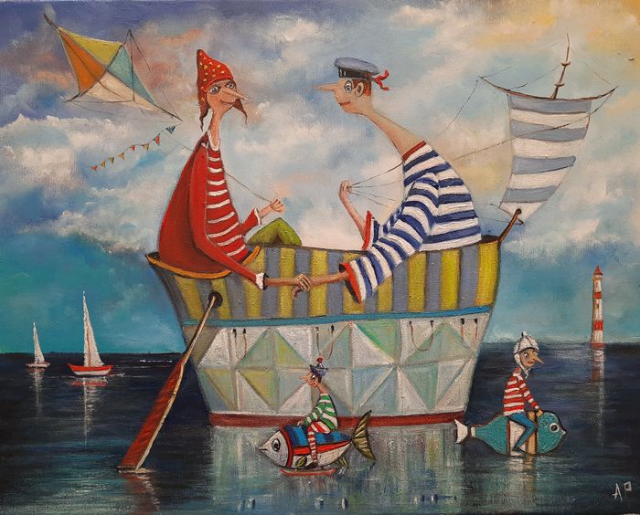 Hundreds of paintings and sculptures are in collections all over the world, including USA, New Zealand and even Afghanistan also in all European countries. Currently inspired by ceramic art in a funny way trying to tell about human passions. Behind the fairy-tale decorations are hidden the deepest human passions and desires. Canvas stretched on wooden frame. Colors of the painting may slightly differ from photos due to screen settings.
