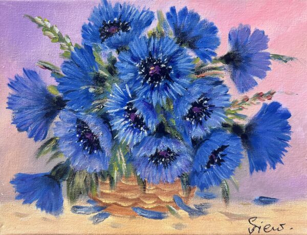 The paintingβs harmonious palette of lilacs, soft pinks, rich blues, and leafy greens evokes the freshness and renewal of spring. Unlike bold impasto works, this piece employs refined, delicate brushwork, capturing the gentle beauty of flowers in quiet bloom.