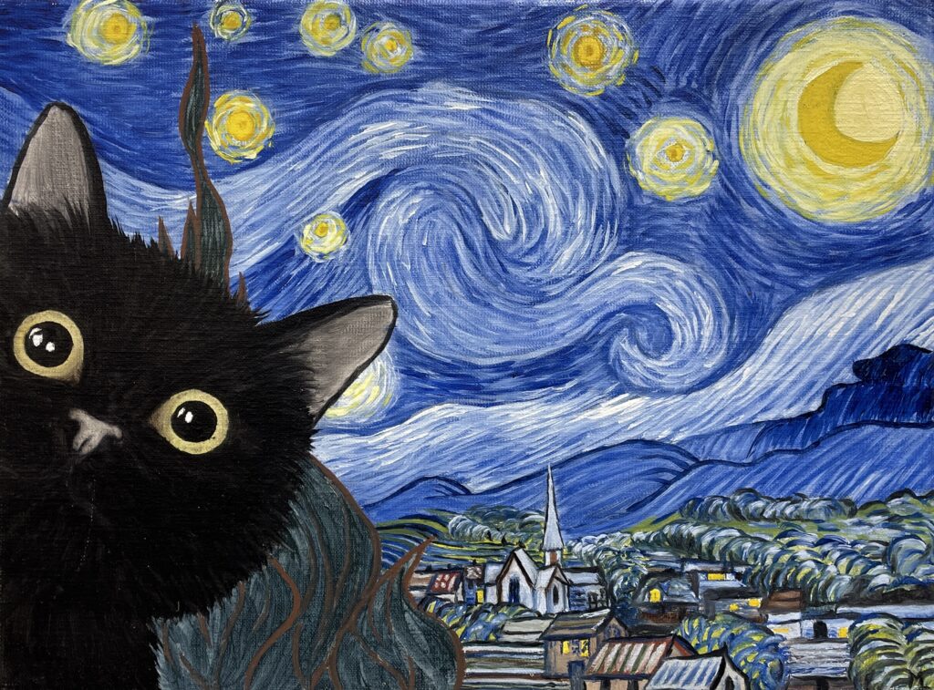https://www.ahg36.com/modern-art-painting/starry-cat-nigh-by-artist-monika-luka-85747/