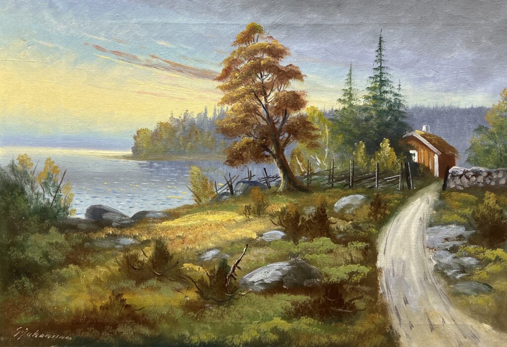 https://www.ahg36.com/modern-art-painting/sunset-path-to-the-lakeshore-cottage-by-artist-european-school-xx-224588/