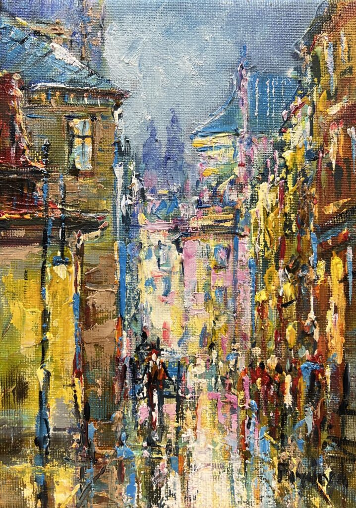 Danuta Frydrych, a talented painting artist, creates her paintings with oil paint on canvas. Her works emanate a unique atmosphere after the rain, in which strong reflections and the play of lights give them an extraordinary atmosphere. In her paintings, you can see how a raindrop flows down the glass, reflecting and blurring the light in a mysterious way. This magical moment is captured on canvas with incredible precision. Through the intricately applied layers of paint, we feel the delicate falling drops and their effect on the surrounding world. The oil paints that Danuta uses create dense and deep colors that bring the paintings to life. Her technique is precise and virtuosic, and every brushstroke matters. As a result, each piece reflects her ability to convey delicacy and strength at the same time. The play of lights and shadows is a key element in Danuta's work. The light falls on the wet sidewalks, reflecting off the puddles, creating a colorful dance. Reflections on the wet surface of the street or shiny leaves give the paintings a three-dimensional character. The artist's eyes are able to see beauty in ordinary, everyday situations and express it on canvas in a unique way. Each painting by Danuta Frydrych is a story that delights and inspires. Her works take us to a magical world after the rain, where reflections and the play of lights enliven landscapes and urban landscapes. Her talent, passion and ability to create atmospheric scenes make Danuta's paintings an unforgettable experience for the eyes and soul.