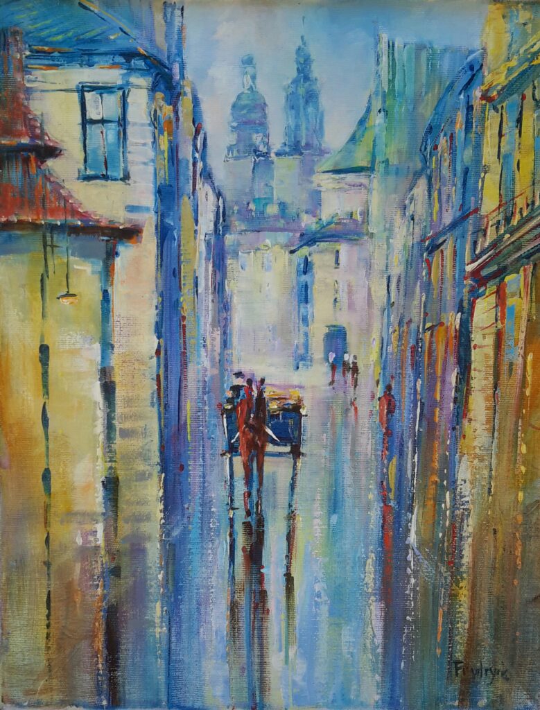 Danuta Frydrych, a talented painting artist, creates her paintings with oil paint on canvas. Her works emanate a unique atmosphere after the rain, in which strong reflections and the play of lights give them an extraordinary atmosphere. In her paintings, you can see how a raindrop flows down the glass, reflecting and blurring the light in a mysterious way. This magical moment is captured on canvas with incredible precision. Through the intricately applied layers of paint, we feel the delicate falling drops and their effect on the surrounding world. The oil paints that Danuta uses create dense and deep colors that bring the paintings to life. Her technique is precise and virtuosic, and every brushstroke matters. As a result, each piece reflects her ability to convey delicacy and strength at the same time. The play of lights and shadows is a key element in Danuta's work. The light falls on the wet sidewalks, reflecting off the puddles, creating a colorful dance. Reflections on the wet surface of the street or shiny leaves give the paintings a three-dimensional character. The artist's eyes are able to see beauty in ordinary, everyday situations and express it on canvas in a unique way. Each painting by Danuta Frydrych is a story that delights and inspires. Her works take us to a magical world after the rain, where reflections and the play of lights enliven landscapes and urban landscapes. Her talent, passion and ability to create atmospheric scenes make Danuta's paintings an unforgettable experience for the eyes and soul.