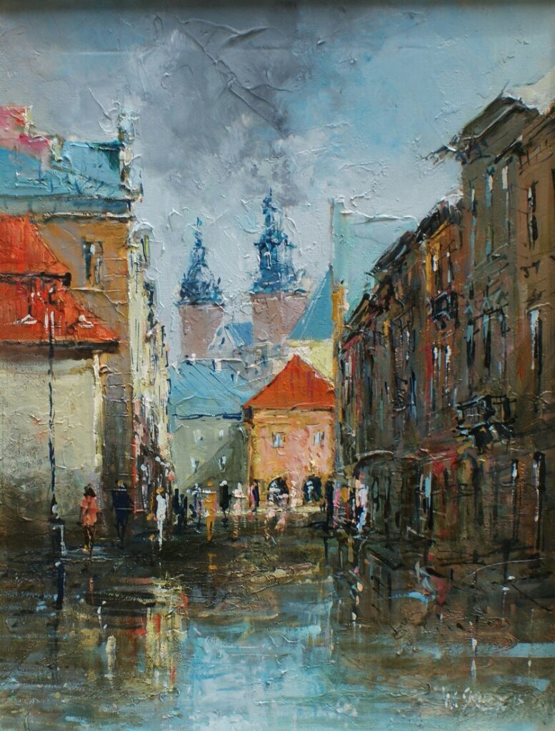 WΕodzimierz Skuza jest absolwentem krakowskiej ASP. Krakowskie zauΕki to temat jego obrazΓ³w.