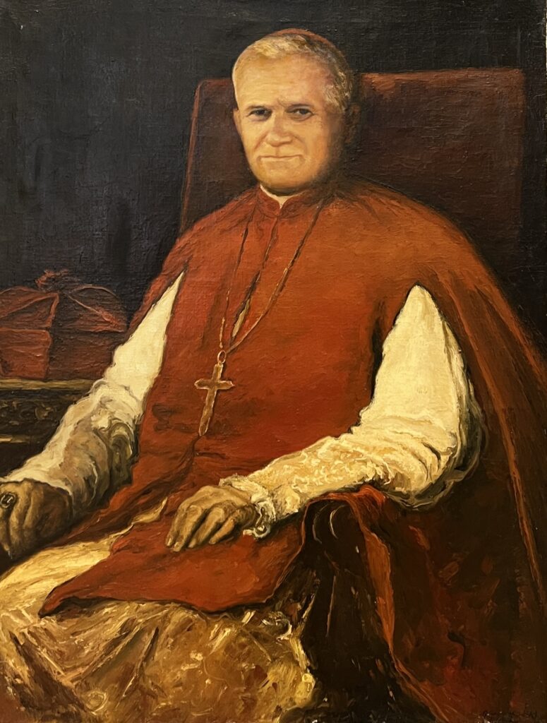 In this riveting portrait, the artist captures the dignified presence of a cardinal, steeped in an aura of serene authority. The composition is a masterful play of rich, earthen tones, complemented by the luxuriant reds of the vestments that frame the subject like a regal tapestry. The nuanced use of chiaroscuro brings depth and gravitas to the piece, echoing the techniques of the Old Masters.