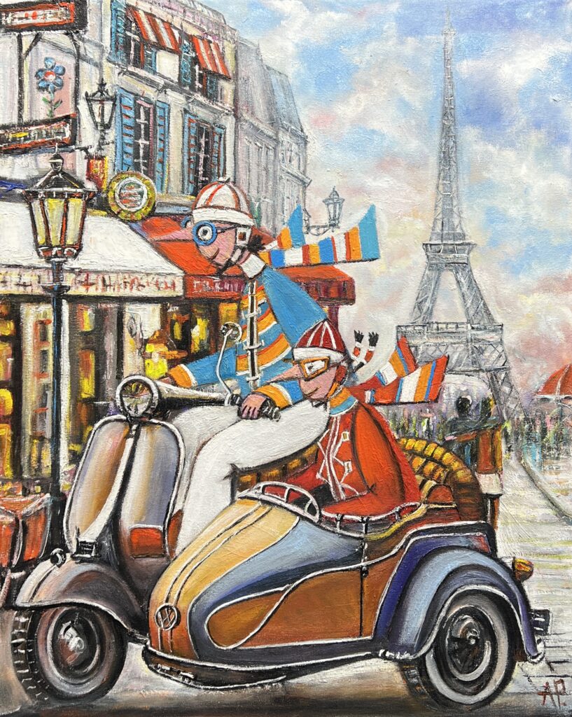 Hundreds of paintings and sculptures are in collections all over the world, including USA, New Zealand and even Afghanistan also in all European countries. Currently inspired by ceramic art in a funny way trying to tell about human passions. Behind the fairy-tale decorations are hidden the deepest human passions and desires. Canvas stretched on wooden frame. Colors of the painting may slightly differ from photos due to screen settings.