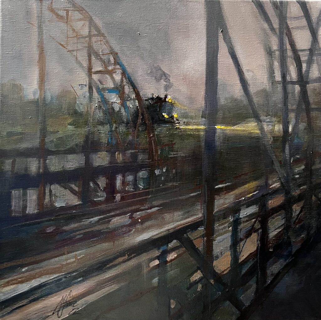 https://www.ahg36.com/modern-art-painting/train-on-a-metal-bridge-by-artist-maciej-szwec-87739/