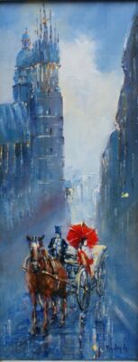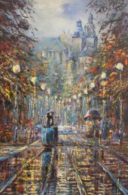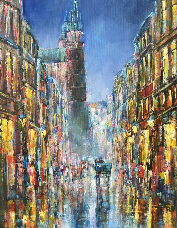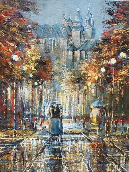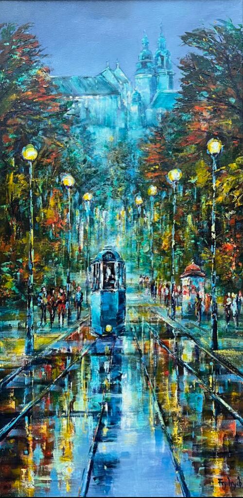 Danuta Frydrych, a talented painting artist, creates her paintings with oil paint on canvas. Her works emanate a unique atmosphere after the rain, in which strong reflections and the play of lights give them an extraordinary atmosphere. In her paintings, you can see how a raindrop flows down the glass, reflecting and blurring the light in a mysterious way. This magical moment is captured on canvas with incredible precision. Through the intricately applied layers of paint, we feel the delicate falling drops and their effect on the surrounding world. The oil paints that Danuta uses create dense and deep colors that bring the paintings to life. Her technique is precise and virtuosic, and every brushstroke matters. As a result, each piece reflects her ability to convey delicacy and strength at the same time. The play of lights and shadows is a key element in Danuta's work. The light falls on the wet sidewalks, reflecting off the puddles, creating a colorful dance. Reflections on the wet surface of the street or shiny leaves give the paintings a three-dimensional character. The artist's eyes are able to see beauty in ordinary, everyday situations and express it on canvas in a unique way. Each painting by Danuta Frydrych is a story that delights and inspires. Her works take us to a magical world after the rain, where reflections and the play of lights enliven landscapes and urban landscapes. Her talent, passion and ability to create atmospheric scenes make Danuta's paintings an unforgettable experience for the eyes and soul.