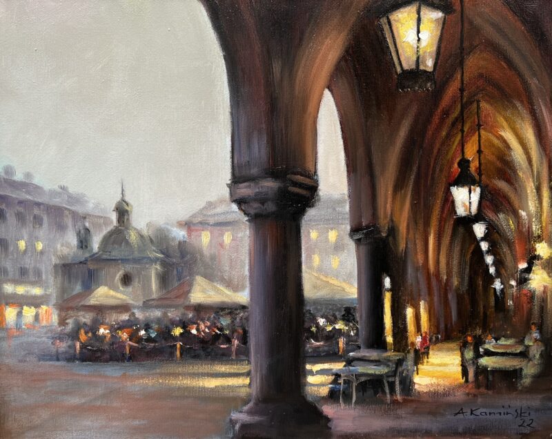 Andrzej KamieΕski maluje pejzaΕΌe i architekture.