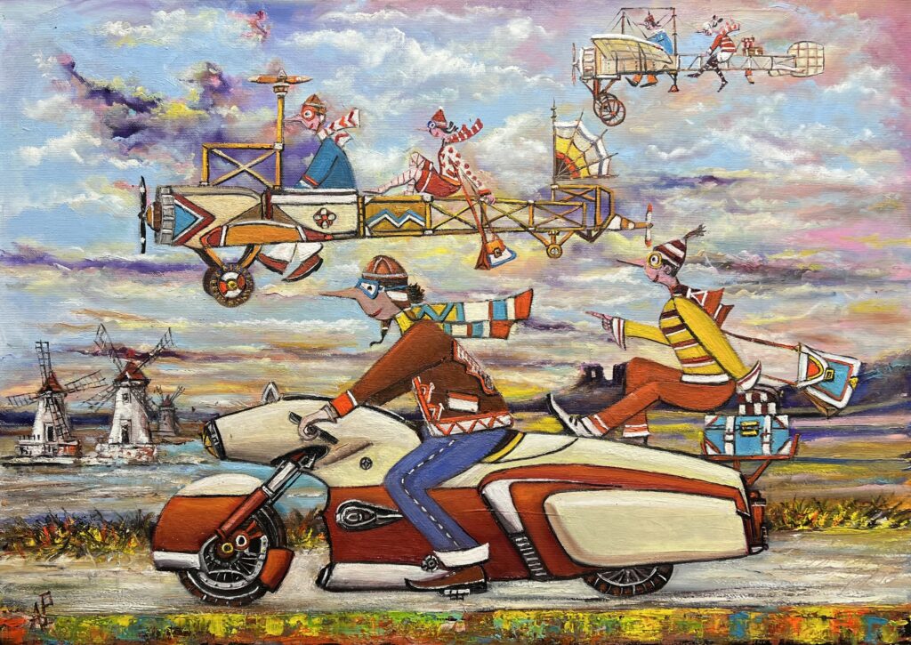 Hundreds of paintings and sculptures are in collections all over the world, including USA, New Zealand and even Afghanistan also in all European countries. Currently inspired by ceramic art in a funny way trying to tell about human passions. Behind the fairy-tale decorations are hidden the deepest human passions and desires. Canvas stretched on wooden frame. Colors of the painting may slightly differ from photos due to screen settings.