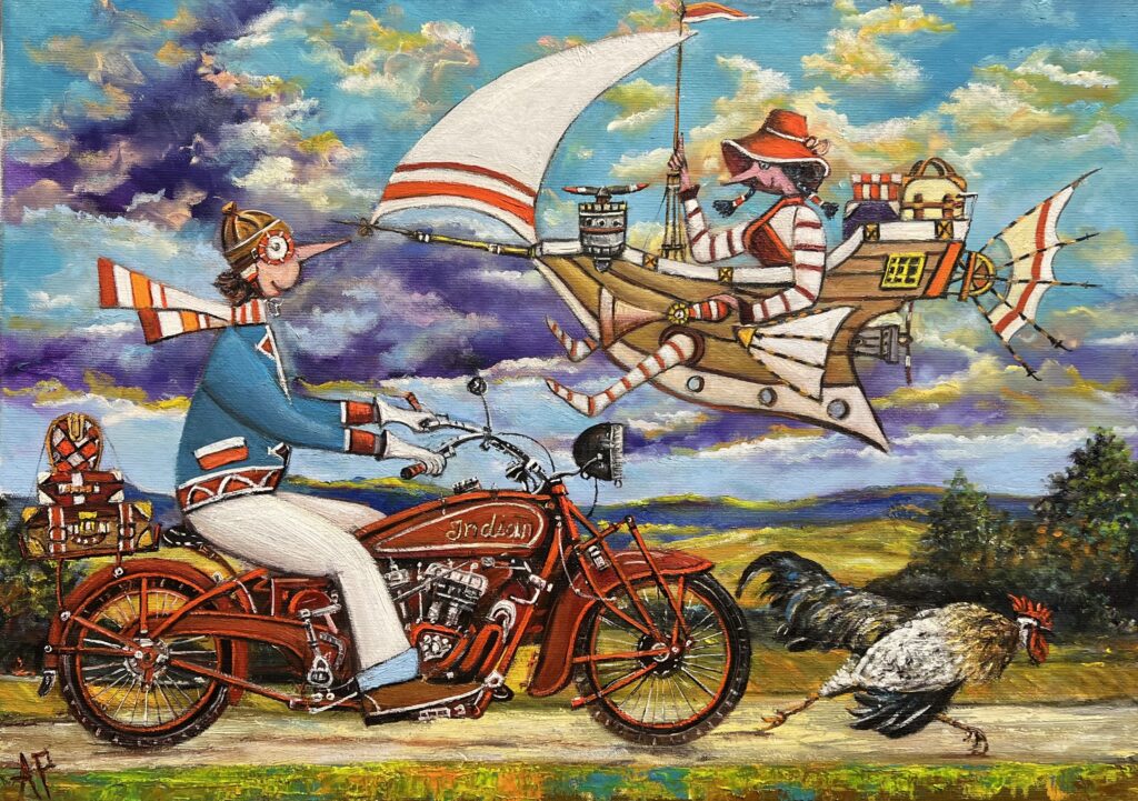 Hundreds of paintings and sculptures are in collections all over the world, including USA, New Zealand and even Afghanistan also in all European countries. Currently inspired by ceramic art in a funny way trying to tell about human passions. Behind the fairy-tale decorations are hidden the deepest human passions and desires. Canvas stretched on wooden frame. Colors of the painting may slightly differ from photos due to screen settings.