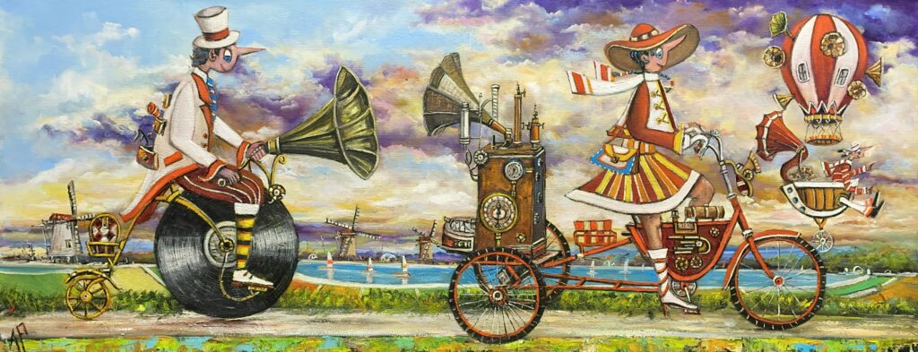 Hundreds of paintings and sculptures are in collections all over the world, including USA, New Zealand and even Afghanistan also in all European countries. Currently inspired by ceramic art in a funny way trying to tell about human passions. Behind the fairy-tale decorations are hidden the deepest human passions and desires. Canvas stretched on wooden frame. Colors of the painting may slightly differ from photos due to screen settings.